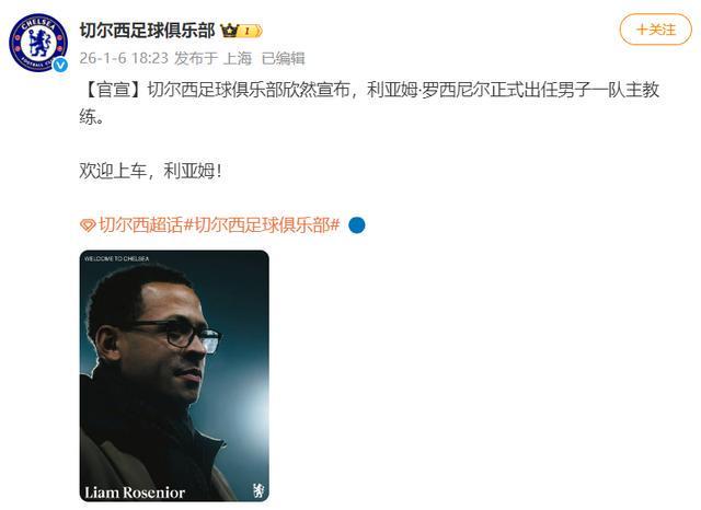 1月6日,據(jù)足球報(bào):英超切爾西足球俱樂(lè)部官方消息,英格蘭少帥羅西尼爾成為切爾西新帥。